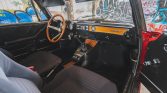The 14″ GB alloy wheels are mounted with 185/70 Dunlop SP10 tires. A painted steel spare wheel with a Bridgestone tire is mounted beneath the trunk floor. A suspension refresh was reportedly performed under current ownership. Braking is handled by discs at all four corners.