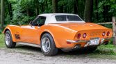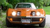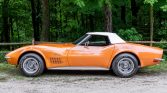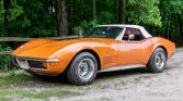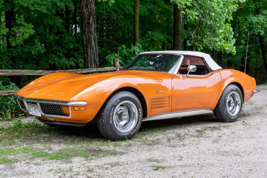 This 1972 Chevrolet Corvette convertible is said to have been acquired from its first owner by the seller in 2018. The car is finished in Ontario Orange over black vinyl upholstery and is powered by a 350ci L48 V8 paired with a four-speed manual transmission. Equipment includes a white soft top, 15″ Rally-style wheels, four-wheel disc brakes, chrome bumpers, power steering, pop-up headlights, and air conditioning. Service in 2020 included replacement of the fuel tank along with suspension work.