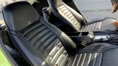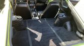 The cockpit features high-back bucket seats featuring black upholstery with textured inserts. Diamond-patterned trim covers the transmission tunnel and rear strut supports. A Clarion stereo is mounted in the factory location, though the aftermarket speakers are not connected. An NRG parking-brake handle has been fitted.