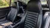 The bucket seats were reupholstered with black vinyl covers and a replacement carpet kit was also installed. Details include matching door panels, a wood shift knob, a carpeted rear cargo area, and a push-button AM/FM radio.