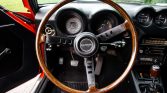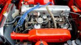 The 2.4-liter L24 inline-six features dual SU carburetors and was factory rated at 150 horsepower and 146 lb-ft of torque. Power is sent to the rear wheels through a four-speed manual transmission. An aftermarket aluminum radiator has been installed.