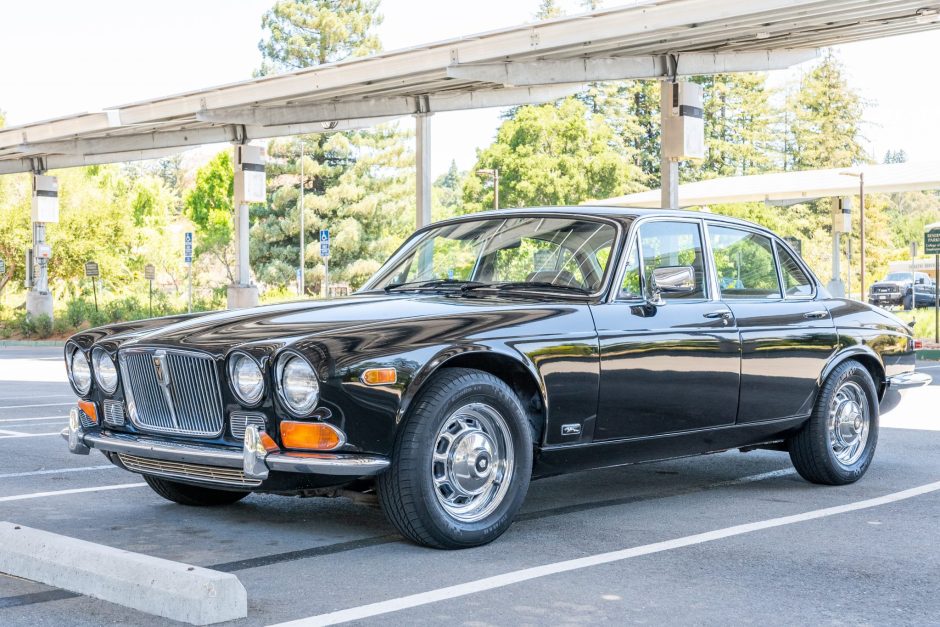 This 1972 Jaguar XJ6 is finished in black over tan leather and is powered by a replacement 4.2-liter inline-six paired with a replacement GM-sourced four-speed automatic transmission. Equipment includes an aftermarket Kenwood stereo, dual exhaust outlets, chrome bumpers and trim, and power windows. The car was acquired by the seller in 2000, and work performed under current ownership has included a repaint as well as the replacement of the engine and transmission, steering components, brake components, battery cables, distributor cap, and ignition wires.