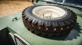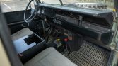 Limestone-painted 16″ steel wheels are wrapped in 225/75 Cooper Discovery SST tires with white lettering. Two matching spares are fitted, one to the hood and one to rear door. The four-wheel drum brake system was reportedly serviced with a replacement master cylinder, wheel cylinders, and brake lines under prior ownership. The front and rear axles are also said to have been serviced and replacement front locking hubs were installed.