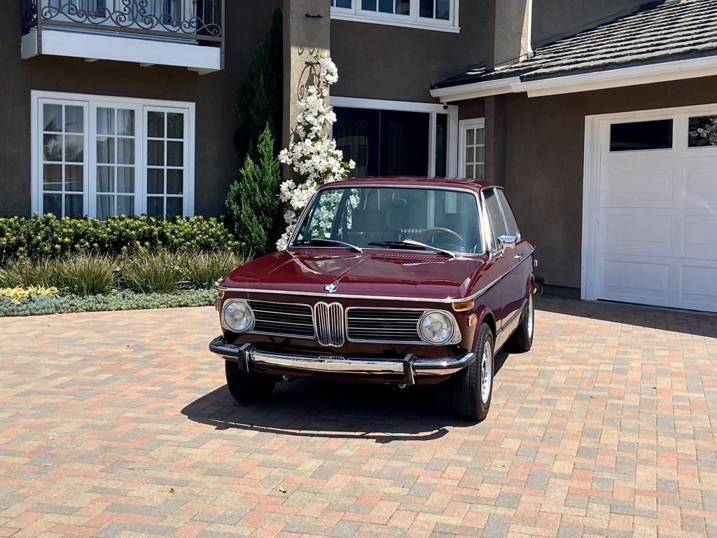 This 1973 BMW 2002tii was acquired by the seller in 2013 and subsequently refurbished. The car is finished in Malaga red over black vinyl upholstery and is powered by a 2.0-liter inline-four paired with a four-speed manual transmission. Additional equipment includes bright grilles and trim, round taillights, a sunroof, a Nardi steering wheel, and front bucket seats with adjustable headrests.