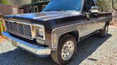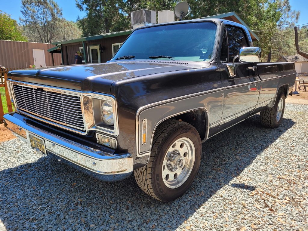 This 1973 Chevrolet C20 is a Fleetside pickup that was refurbished under prior ownership with a 350ci V8 and a three-speed automatic transmission, a rebuild of the differential, a repaint of the exterior, and an overhaul of the cabin. The truck is finished in black and gray over matching two-tone vinyl upholstery, and it features 17″ American Racing wheels, tinted windows, air conditioning, and a Bluetooth-capable Alpine stereo.
