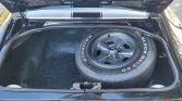 Gray-finished 15″ wheels with polished lips are mounted with 235/60 BFGoodrich Radial T/A tires. The front disc and rear drum brakes were replaced during the refurbishment along with the shocks and springs, and polyurethane bushings reportedly were added at that time.