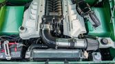 This 1973 Ford Bronco was refurbished and modified with the installation of a Roush-supercharged 5.0L Coyote V8 linked to a 10L80 ten-speed automatic transmission, a twin-stick transfer case, and locking front and rear differentials. The body was refinished in mint green pearl, and the truck rides on a lifted suspension in addition to 17″ steel wheels mounted with 35″ tires. Further equipment includes a removable hardtop, Mile Marker manually locking front hubs, power-assisted disc brakes, LED headlights, power-deployable…