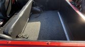 The front bucket seats and folding rear bench were reupholstered in black vinyl under previous ownership. Sound deadening material was added beneath the replacement carpets, and additional equipment includes a roll bar, padded door panels, manual crank windows, and a heater and defroster.