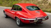 This 1973 Jaguar E-Type Series III 2+2 is powered by a 5.3-liter V12 linked with a three-speed automatic transmission and a limited-slip differential. The car was restored circa 2004 and is finished in Signal Red over black leather. Features include four-wheel disc brakes, power steering, 15” knock-off wire wheels, quadruple carburetors, a leather-wrapped steering wheel, and an aftermarket CD player.