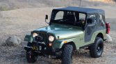 This 1973 Jeep CJ-5 is finished in green with a black soft top over black vinyl, and power is provided by a fuel-injected 258ci inline-six paired with a four-speed manual transmission. Equipment includes a dual-range transfer case, manually locking front hubs, 15″ American Racing wheels, steel front and rear bumpers, a Warn winch, a rear tire carrier with jerry-can holders, a 2.5″ BDS suspension lift, LED lighting, full soft doors, a CB radio, and a six-point roll…