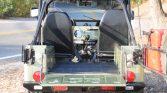Spare components that will accompany the Jeep include removed parts, a Carter one-barrel carburetor, a second aluminum intake manifold with a two-barrel carburetor, a Grant aftermarket steering wheel, a water pump and a power steering pump with their corresponding pulleys, a rear driveshaft, a spare set of four steel rims, an additional spare wheel and tire, a fold-and-tumble rear seat, a Bestop bikini top, and other miscellaneous components.