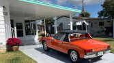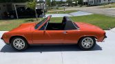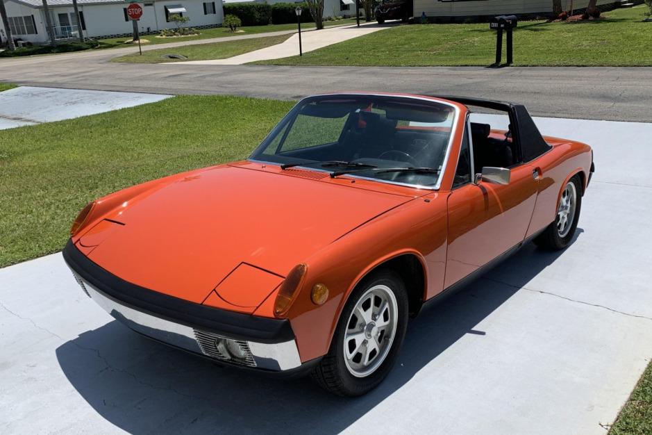 This 1973 Porsche 914 is finished in Phoenix Red over black vinyl and powered by a 2.0-liter flat-four paired with a five-speed manual transaxle. The car was acquired by the seller and his father in 2019, and subsequent work has included wiring repairs, installation of PerTronix electronic ignition and a Bursch muffler, resealing of the rear window, and replacement of the brake components, bumpers, removable roof panel, and additional items of exterior and interior trim. This 914 is now offered in Florida with recent service records, a shop manual, a car cover, and a clean Michigan title in the seller’s name.