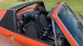 The exterior is finished in Phoenix Red (L32K) with chrome brightwork. Equipment includes pop-up headlights, integrated front fog lights, and a replacement removable roof panel fitted with a new headliner. The front and rear bumpers, engine deck lid seal, side marker lenses, and roll bar vinyl coverings and bolster pads have reportedly been replaced, and the rear window is said to have been resealed. A paint blemish is noted behind the right door, and the condition of the body and trim can be seen close up in the image gallery below.