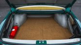 The 14″ alloy wheels wear BMW center caps and are mounted with 195/70 Yokohama Avid Touring-S tires. A matching spare wheel with a Bridgestone tire is mounted under the trunk floor. Braking is handled by discs at all four corners.