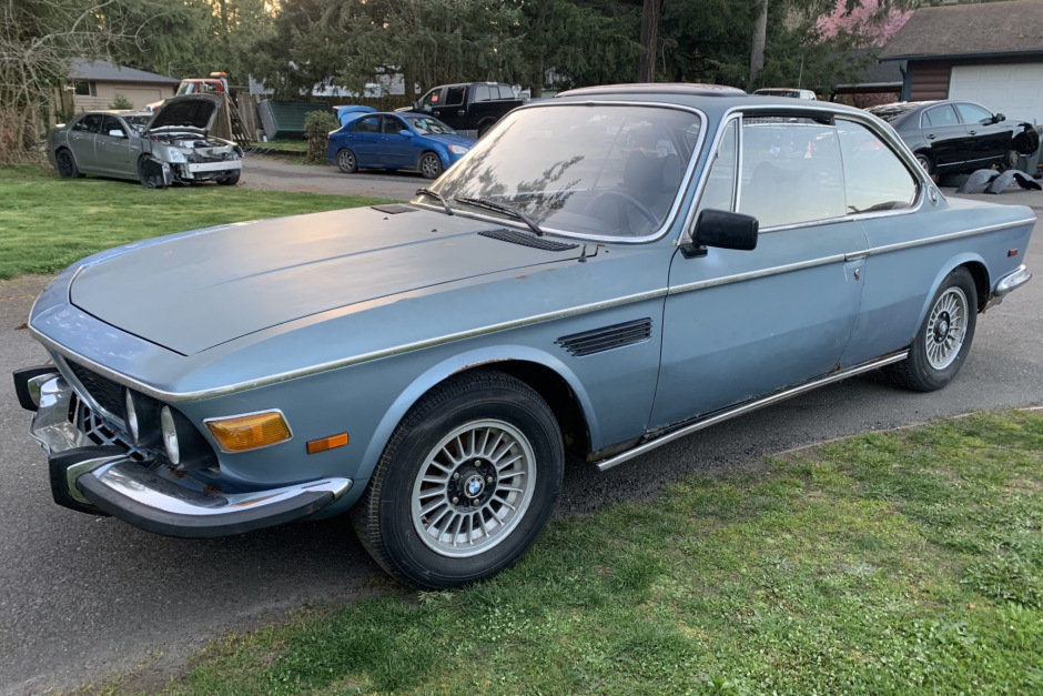 This 1974 BMW 3.0CS was acquired the seller in 2017 as a project and is finished in blue over blue cloth. Its 3.0-liter inline-six is paired with a three-speed automatic transmission, and equipment includes a manually operated sunroof, 14″ wheels, four-wheel disc brakes, chrome bumpers, power steering, and a Blaupunkt AM/FM/cassette radio and equalizer.