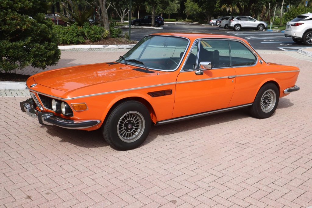 This 1975 BMW 3.0CS is a European-market example that was reportedly exported from Germany to Colombia in 1975, where it was acquired by the seller’s spouse in 2010 and subsequently refurbished before being imported to the US in 2020. The car was refinished in orange over black vinyl upholstery and is powered by a 3.0-liter inline-six paired with a four-speed manual transmission. Additional equipment includes chrome bumpers and trim, 14″ alloy wheels, Bilstein dampers, an Alpina steering…