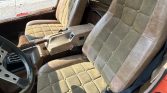 The bucket seats are covered in two-tone tan vinyl and suede microfiber cloth, and they are accompanied by a color-coordinated dashboard and door panels. Equipment includes a factory radio, a three-spoke President steering wheel, air conditioning, and a rear defroster.