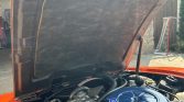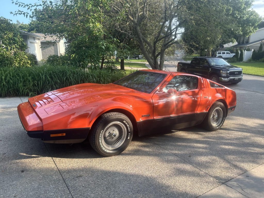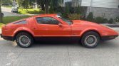 This 1975 Bricklin SV-1 is finished in red over a tan interior and powered by a 351ci Windsor V8 paired with a three-speed automatic transmission. The car is equipped with air-actuated gullwing doors, pop-up headlights, 15″ Turbo Mag aluminum wheels, power-assisted front disc brakes, a dual exhaust system, air conditioning, and a factory radio.