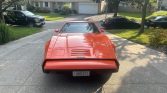 The SV-1 features acrylic resin body panels bonded to a fiberglass substrate, which are mounted on a steel frame with an integrated rollover structure. A claimed 2,100 examples were produced for the 1975 model year, and this one was repainted in its current shade of red around 1995. Design cues include pop-up headlights, impact bumpers, and gullwing doors that have been converted to air actuation.