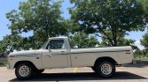The truck is said to have been refinished in Wimbledon White under previous ownership. Features include a tonneau cover, a chrome front bumper, a rear step bumper, chrome and black molding, a “Ford” decal on the rear window, and a decorative pinstripe on the tailgate.