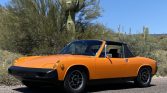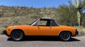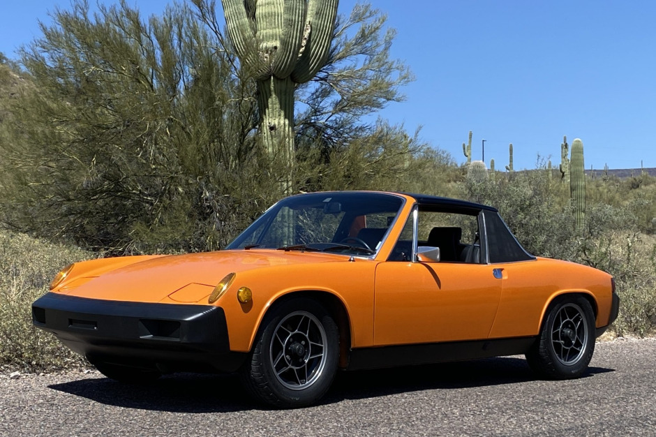 This 1975 Porsche 914 is finished in Nepal Orange and was purchased by the seller in 1990, reportedly from the first owner. Refurbishment work completed in 2021 included refreshing the black interior with orange-plaid seat inserts, rebuilding the flat-four to displace 1,911L, inspecting and resealing the five-speed manual transaxle, overhauling the brake system, and refinishing the targa top, rocker panels, and valances. Other features include a lightweight flywheel, a PerTronix electronic ignition conversion, an aftermarket camshaft, a replacement exhaust system, disc brakes, and 15″ ATS alloy wheels.