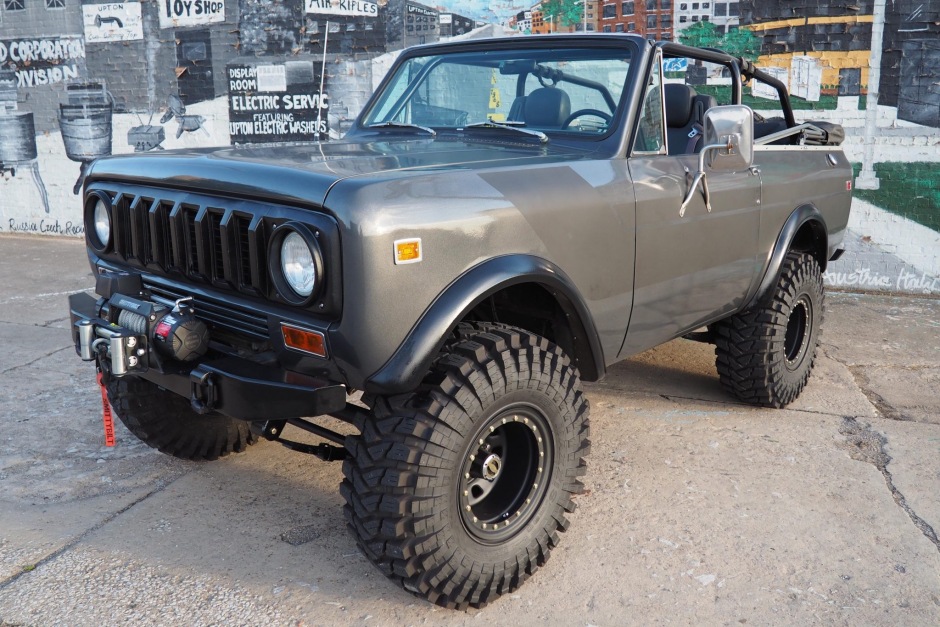 This 1976 International Harvester Scout II was acquired by the seller in 2015 and subsequently refurbished and modified. It has been refinished in gray with matte black graphics, and power is from a 345ci V8 mated a four-speed manual transmission, a dual-range transfer case, and a limited-slip differential. The engine is fitted with an Edelbrock carburetor, a Spectre Performance intake plenum, and a Davis Unified Ignition system, while the suspension benefits from a 1″ body lift, a Rough Country 4″ suspension lift, 15″ Pro Comp wheels, and 35″ Maxxis Trepador tires. Other modifications include a six-point roll cage, Bushwacker fender flares, Anything Scout bumpers, a Smittybilt winch, a Vintage Car Radio stereo, Hella headlights, a Flowmaster exhaust system, and a Softopper soft top.