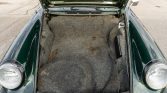 The car was finished in Oak Green Metallic (74) from the factory and is said to have been repainted under previous ownership. Features include a sunroof, a driver-side mirror, color-matched impact bumpers with rear bumperettes, and stainless window trim. Black headlight trim has been fitted, and the sale includes chrome “sugar scoop” headlight rings.