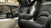 Two black fabric OMP HTE-R racing seats are housed in the cockpit. A Terratrip rally computer is also installed along with air vents, Wilwood pedals, a Wilwood hand brake, and a billet Fortin sequential shifter. A fire suppression system is included in the sale along with a Rugged Radios intercom system and a GPS.