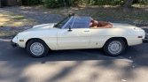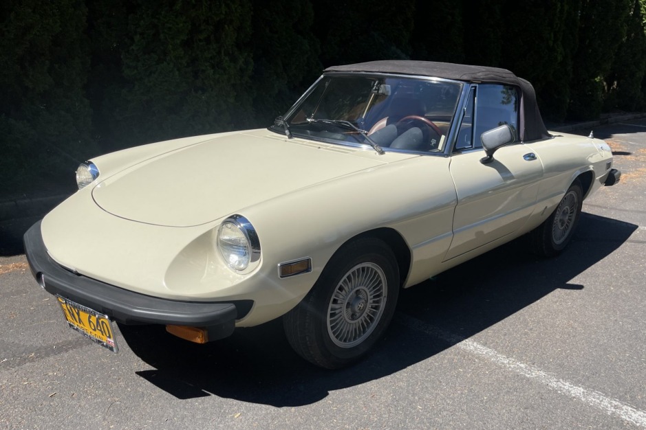 This 1978 Alfa Romeo Spider is finished in ivory white over a tan interior and is powered by a fuel-injected 2.0L inline-four mated with a five-speed manual transmission. Equipment includes a black soft top, 14” Turbina wheels, a Clarion AM/FM/cassette stereo, a locking glove compartment, an ash tray, and a wood-rimmed steering wheel. The car is said to have had two prior owners in Oregon before being recently acquired by the seller, and an oil change was performed in preparation for the sale.