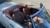 The car is finished in ivory and features a black soft top as well as black US-spec bumpers, a chrome driver-side mirror, a power-operated antenna, and a central polished exhaust outlet.