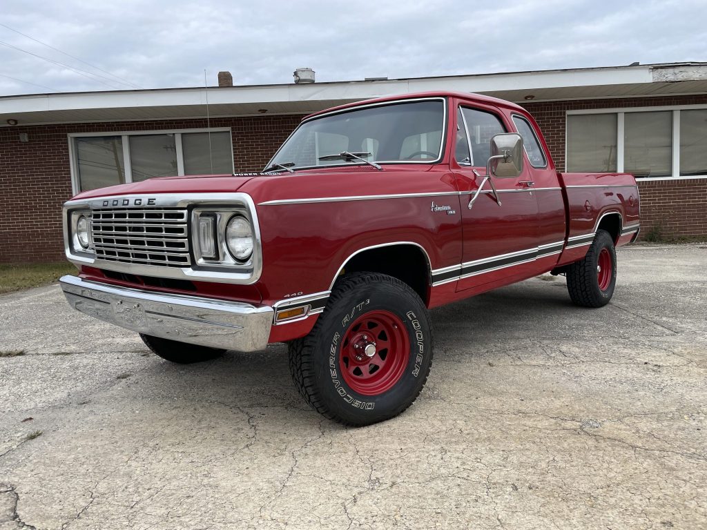 This 1978 Dodge Power Wagon is a Club Cab model finished in two-tone red over a red interior and powered by a replacement 440ci V8 paired with a three-speed automatic transmission and dual-range transfer case with a locking center differential. Additional equipment includes 15″ body-colored wheels, front disc brakes, chrome bumpers, towing mirrors, a sunroof, and a Pioneer stereo wired to a Rockford Fosgate amplifier and speakers.