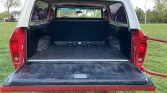 The truck was refinished in red under previous ownership, and it is equipped with a white removable hardtop. Additional exterior features include chrome bumpers, a bull bar with integrated KC Daylighter auxiliary lights, western-style side mirrors, a power rear window, and a rear-mounted spare tire. Work performed under current ownership included refinishing the tailgate and spare tire mount to correct scratches, as well as replacing the driver’s door gasket, the side window division bar glass runs, and the rear license plate lights. Touch-up paintwork is noted on the passenger door and on the front cowling.