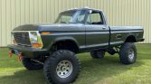 This 1979 Ford F-250 is a standard-cab 4×4 that was refurbished and modified from the seller’s acquisition in 2010 over the following six years. The work included sourcing a 1978 bed and a 1977 cab, a repaint in Ford Guard Metallic, and installation of a 460ci V8 as well as a four-speed NP435 manual transmission and an NP205 dual-range transfer case. Additional equipment includes an aftermarket hood and tailgate, a 6″ lift with Rancho shocks, 16.5″ wheels…