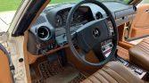 The front bucket seats and the rear bench are upholstered in Palomino MB-Tex that extends to the center console, lower dashboard, and portions of the door panels. Wood trim accents the interior, and amenities include power windows, cruise control, a Becker Mexico AM/FM/cassette stereo, and woven floor mats.