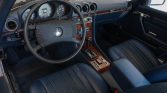 The interior is trimmed in blue leather with a matching dashboard, door panels, and carpeting. Wood trim accents the dashboard and console, and features include automatic climate control, power windows, cruise control, a first aid kit, and a Becker Mexico cassette stereo.