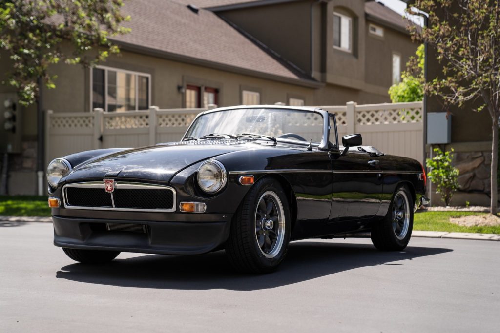 This 1979 MGB Roadster was acquired as a modified project by the seller in 2017 and has since received a cosmetic and mechanical refurbishment. Power is supplied by a replacement 215ci V8 that was rebuilt and fitted with an Edelbrock carburetor, a Crower camshaft, Summit Racing ignition, a PerTronix electronic distributor, and an aftermarket exhaust system. The Tremec T5 five-speed manual transmission was also refreshed, and additional work included overhauls of the suspension and brakes along with a replacement wiring harness, a black soft top, and a reupholstered black interior. Further modifications include 15″ Superlite wheels, Brembo drilled and slotted front rotors with four-piston calipers, a front air dam, and a Hurst shifter.