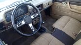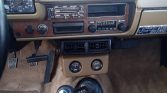 The cabin features a two-tone brown vinyl bench seat along with a matching dashboard, carpets, and door panels. Amenities include air conditioning and an AM/FM radio.