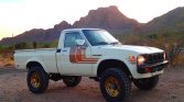 The 2.2-liter 20R inline-four breathes through an aftermarket Weber carburetor. The seller states that recent service includes changing the oil and replacing the spark plugs and filters.
