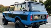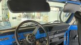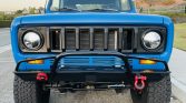 The exterior was reportedly taken down to bare metal and resprayed in Blockbuster Blue with gloss black side stripes in 2019 following replacement of the inner and outer rear fenders along with the floor pans. The removable hardtop was also refinished in gloss black with a gray felt headliner. Features include a roof rack, aftermarket steel bumpers with shackles, a 2” receiver hitch, LED exterior lighting, and a black-finished grille with round LED headlights.