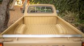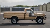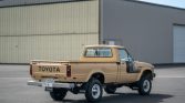This 1980 Toyota pickup is a long-bed model that was sold new by Mid-Valley Toyota in Marysville, California, and was acquired by the current owner in 2019. The truck is finished in beige with tri-color aLents over a tan interior and is powered by a carbureted 2.2-liter inline-four paired with a four-speed manual transmission and a dual-range transfer case. Additional features include 15″ wheels, a sliding rear window, and an AM/FM radio.