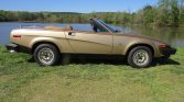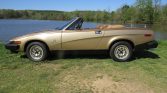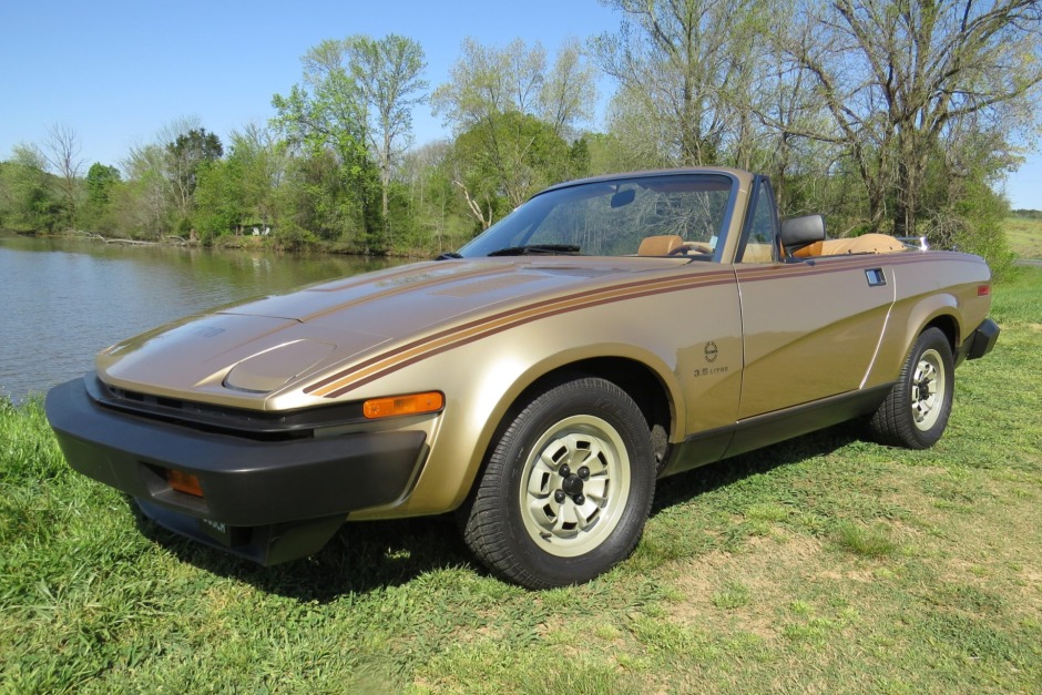 This 1980 Triumph TR8 is finished in Midas Gold Metallic over saddle upholstery and is powered by a 3.5-liter Rover V8 paired with a five-speed manual transmission. Features include pop-up headlights, a Moto Lita steering wheel, a Sony stereo, air conditioning, a luggage rack, and 13″ alloy wheels. The car was acquired by the seller’s father in 2005, and subsequent work reportedly included a repaint as well as replacement of the seat upholstery and carpet.