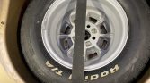 Factory 13″ cast-aluminum wheels wear 205/60 Cooper Cobra tires bearing 2004 date codes. A BFGoodrich tire is mounted to the matching spare wheel stored in the trunk.