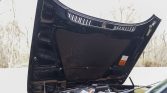 The body is finished in black with hand-painted gold pinstripes along the beltline and trunk lid. Equipment includes a front chin spoiler, front splash guards, and pop-out rear quarter windows.