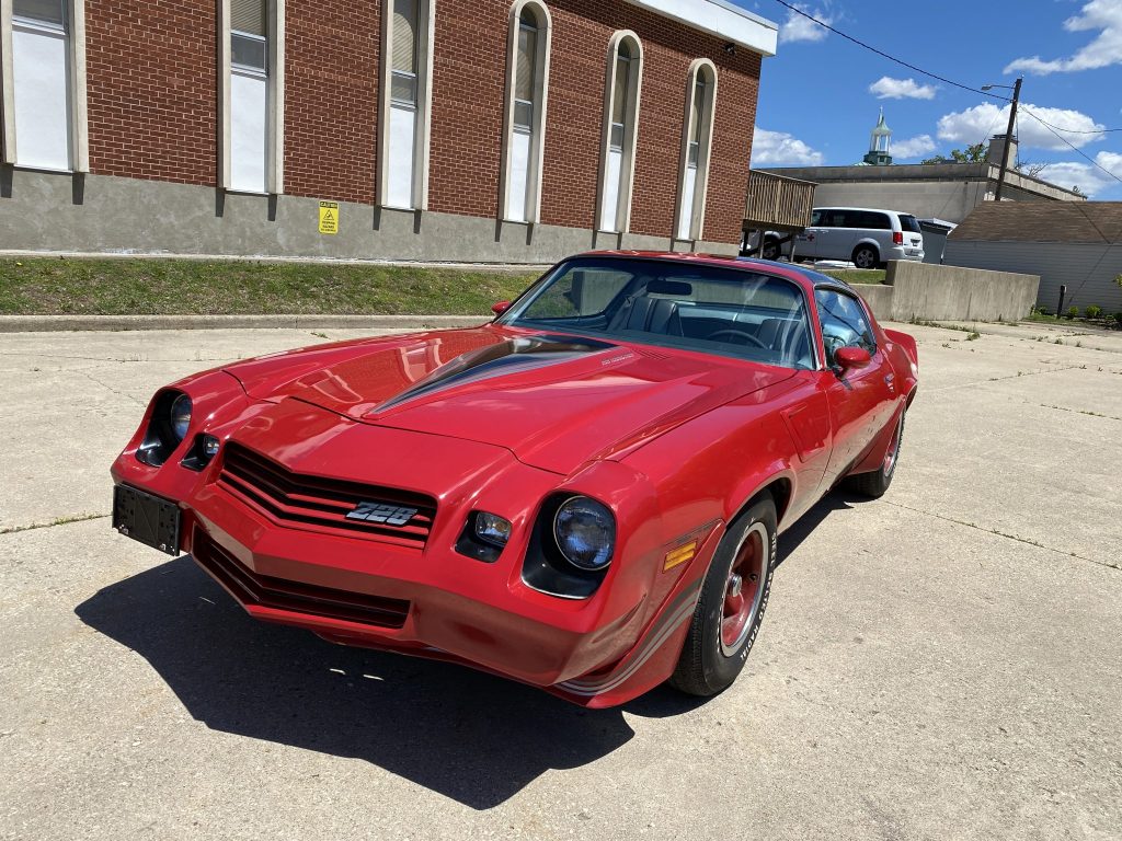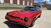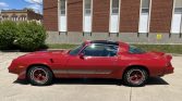 This 1981 Chevrolet Camaro Z28 coupe is finished in red over silver vinyl upholstery and is powered by a 350ci V8 paired with a three-speed automatic transmission. Equipment includes a cowl-induction hood, a stereo with an eight-track player, air conditioning, removable glass t-top panels, F41 performance suspension, front and rear spoilers, and power locks and windows. The car was first delivered to Bob Cheesman Chevrolet-Olds of Spring Valley, Illinois, and is said to have been stored by the original owner from 1984 until it was acquired by the seller in April 2021.