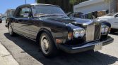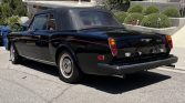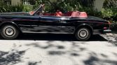 This 1981 Rolls-Royce Corniche convertible is finished in black with a black top over red leather and is powered by a 6.75-liter V8 paired with a three-speed automatic transmission. Equipment includes power windows and locks, climate control, and a Blaupunkt AM/FM stereo with a Pioneer cassette player.