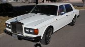The Silver Spur was the long-wheelbase variant of the contemporary Silver Spirit. This example was finished from the factory in Acrylic White, and it features an upright chrome grille that is topped by a Spirit of Ecstasy hood ornament, quad rectangular headlights, a white vinyl roof, black rubber and chrome bumpers, and chrome window trim.
