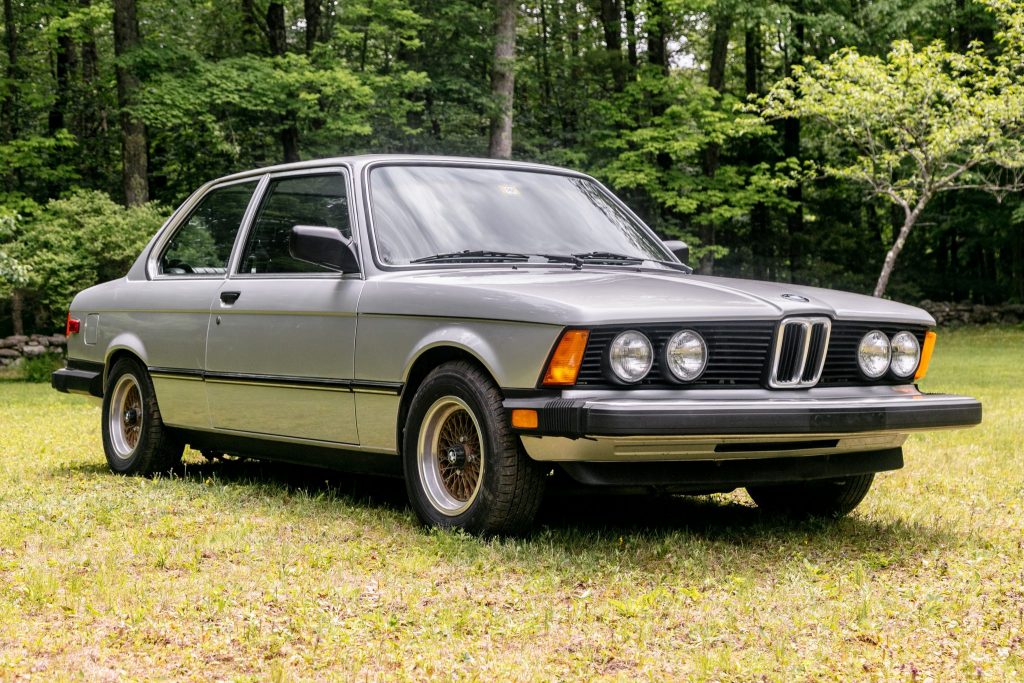 This 1982 BMW 320i is finished in Polaris over black leather and is powered by a 1.8-liter inline-four mated to a five-speed manual transmission. Equipment includes a Century turbocharger kit, Bilstein shocks, sport springs, front and rear sway bars, 13″ Carroll Shelby CSS alloy wheels, front Recaro sport seats, a steel sunroof, and air conditioning. The car spent time in several states, including North Carolina and Iowa, before the seller’s acquisition and subsequent relocation to Vermont in September 2018.