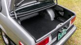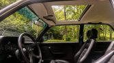 The interior features front Recaro bucket seats and a rear bench upholstered in black leather. Additional equipment includes air conditioning, manual wind-up windows, a locking glove compartment, and a cassette stereo linked to four Polk speakers.