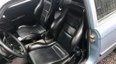 The interior houses bolstered front sport seats and a rear bench that are trimmed in black vinyl along with matching door panels and grey carpeting. A Kenwood stereo has been added, and additional appointments include an aftermarket cue-ball shift knob.
