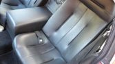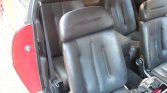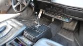 The 2+2 cabin is upholstered in black leather with a matching dashboard, center console, door panels, and carpets. Amenities include electric windows, a gated shifter, air conditioning, and an aftermarket Blaupunkt head unit.